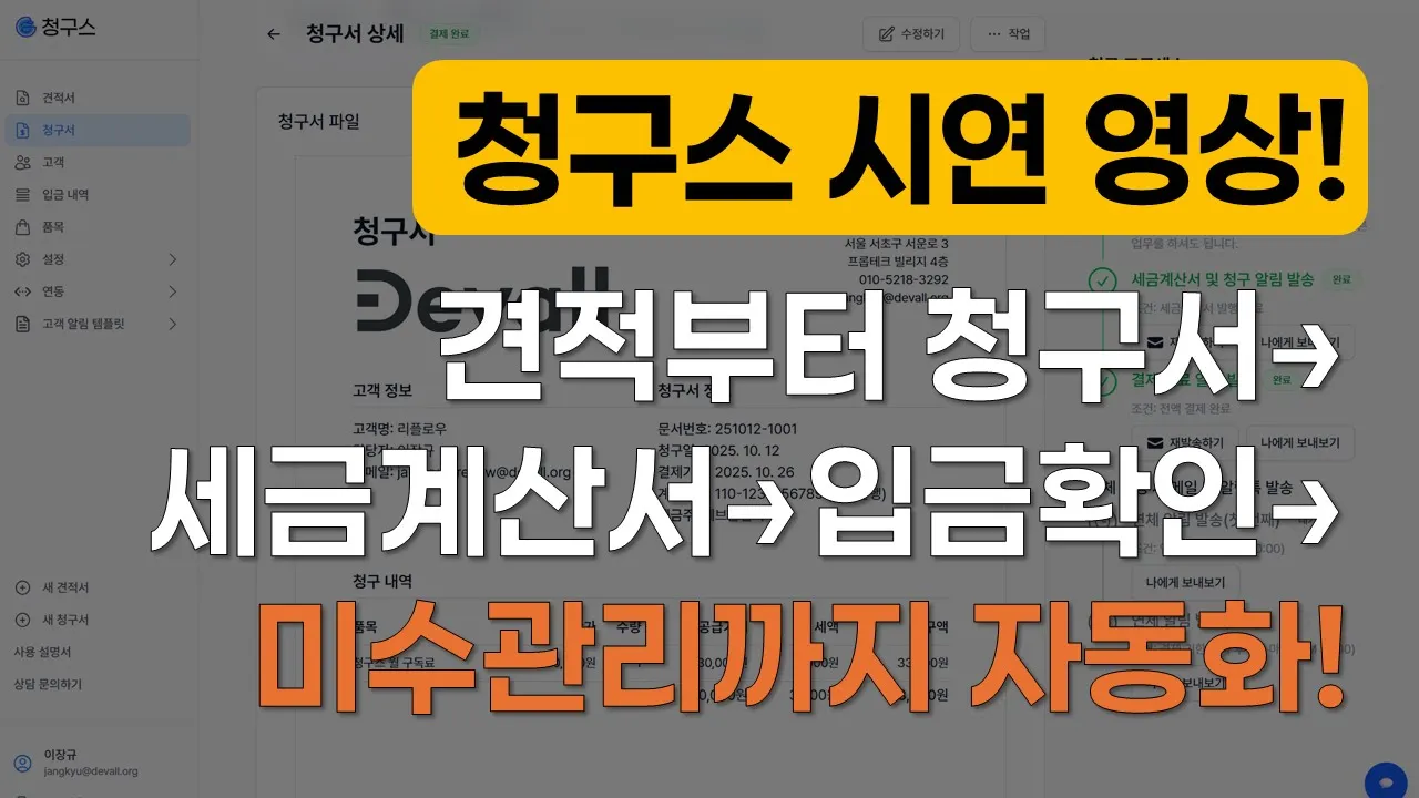 전문가 수준의 청구서 생성 → 세금계산서 발행 → 실시간 입금 데이터를