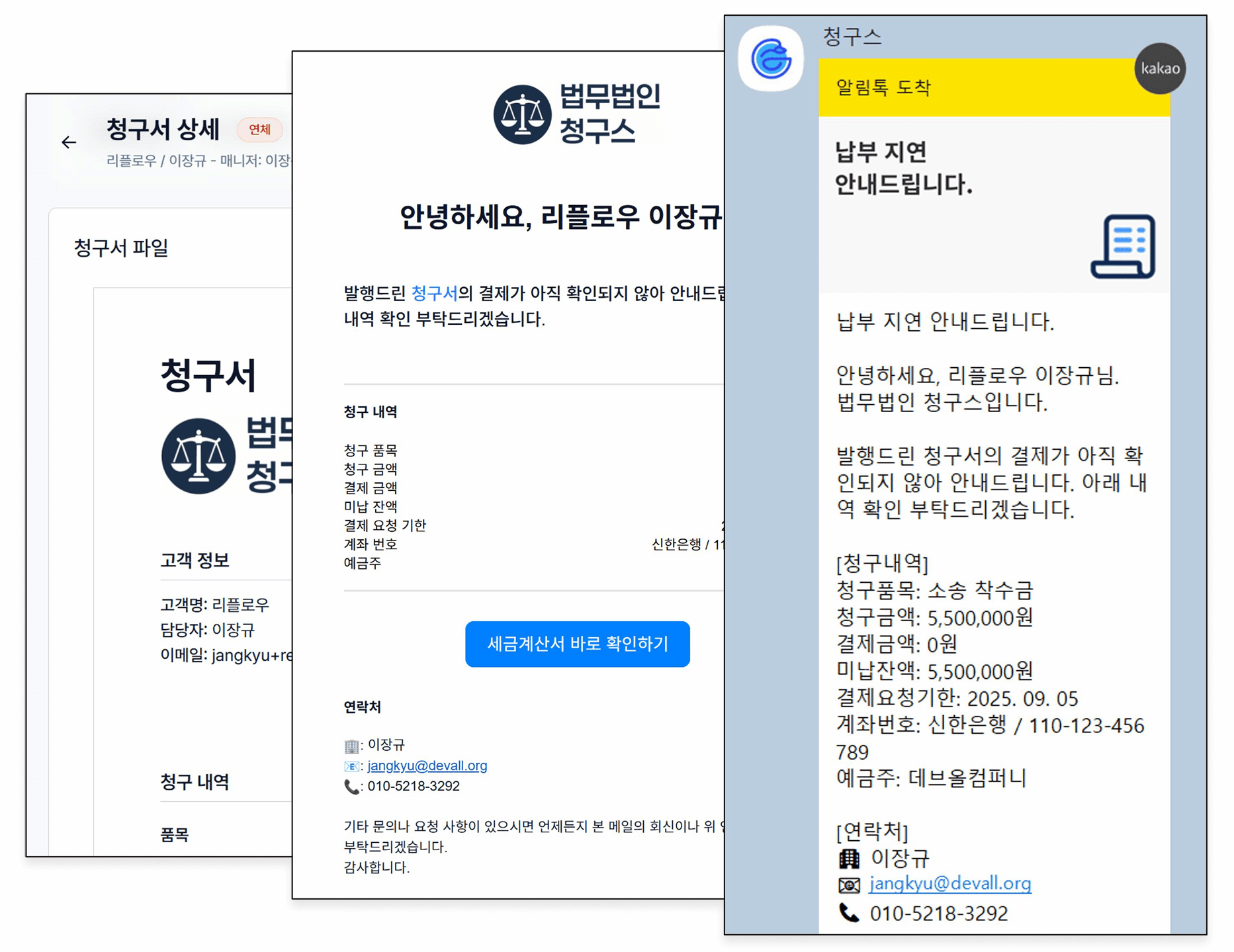 청구서가 신경 써서 날아왔다고 인지되니, 유선으로도 업무 관련 연락이 더 활발하게 되는 부수적인 효과도 있었습니다.