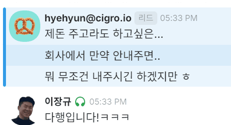 하하, 정곡을 찌르셨네요. 🎯 사실 예전에 채널톡으로 대표님께 말씀드린 적 있는데, "만약 회사에서 결제를 안 해주면 제 사비로라도 쓰고 싶다"고 했었거든요.