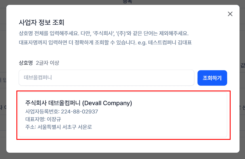 Q1. 상호명만으로 정말 사업자 정보가 조회되나요?