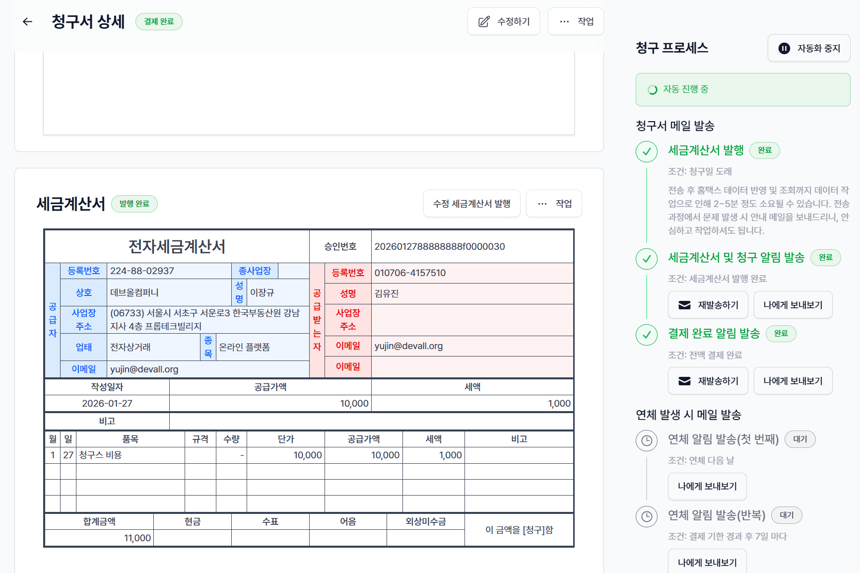 세금계산서 발행 → 자동