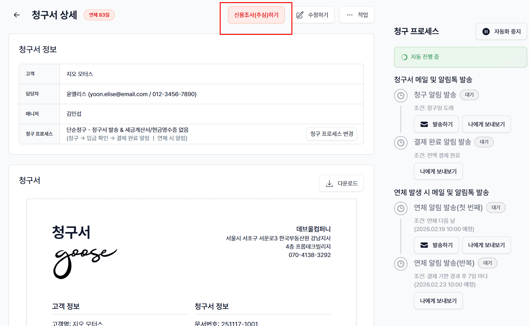 신용조사와 추심은 최후 수단이에요. 가장 좋은 건 연체 자체를 막는 겁니다. 청구스는 예방부터 회수까지 하나의 흐름으로 연결해드려요.