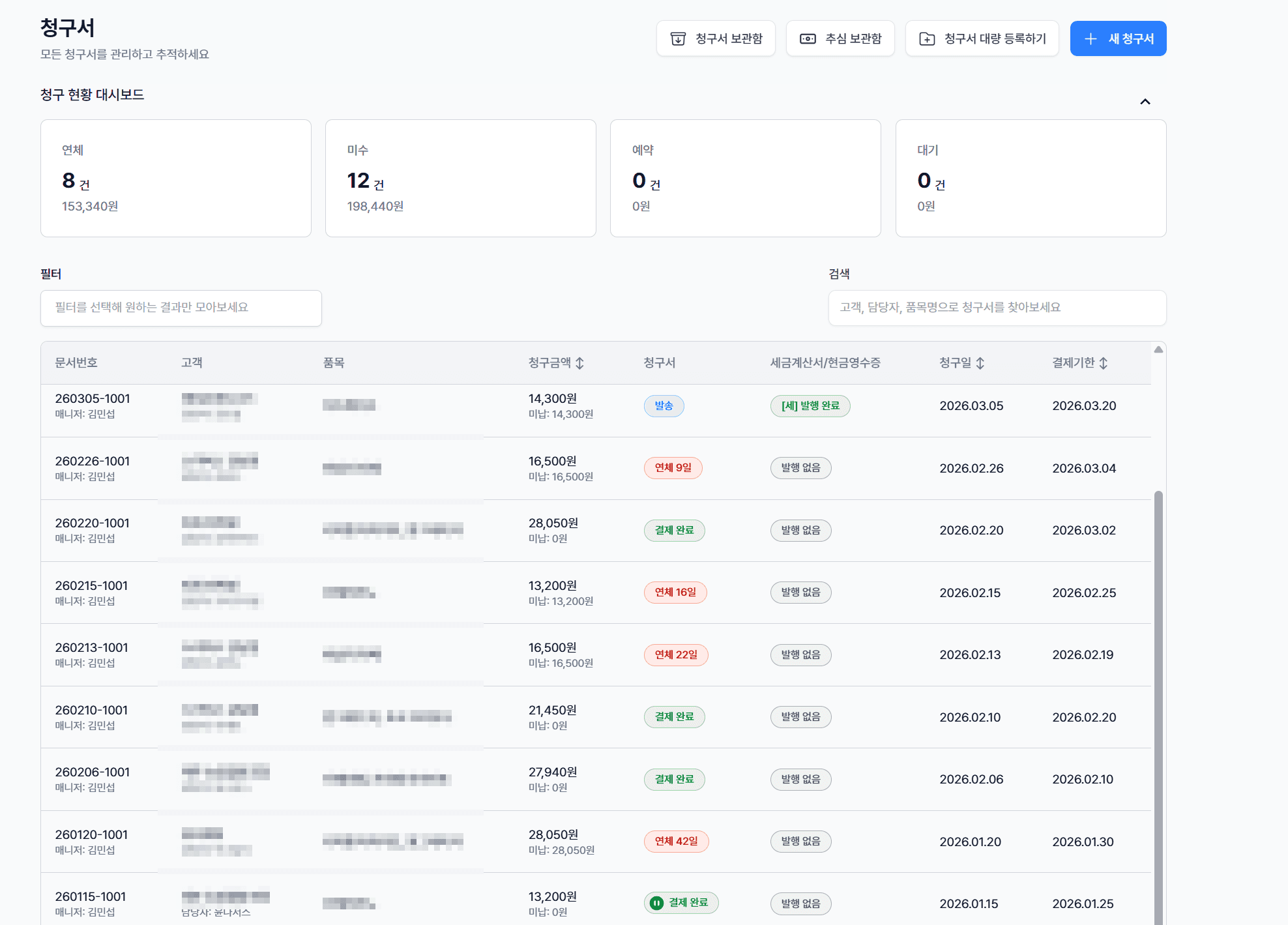 청구스는 청구 금액과 실제 입금을 자동으로 매칭합니다. 어떤 거래처에서 얼마가 들어왔는지, 아직 미수인 건 얼마인지가 대시보드 한 화면에 나오니까
