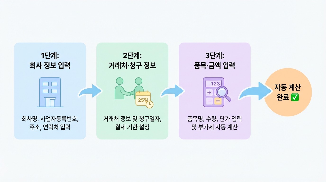 양식이 안 맞아서 처음부터 다시 만들고, 금액 계산이 틀려서 거래처에 정정 연락을 해야 했던 경험… 은근히 스트레스입니다.