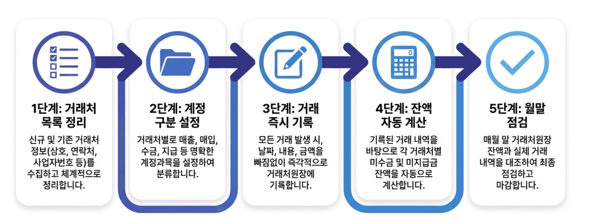 실무에서 거래처원장을 만들고 운영하는 흐름을 5단계로 정리했습니다.