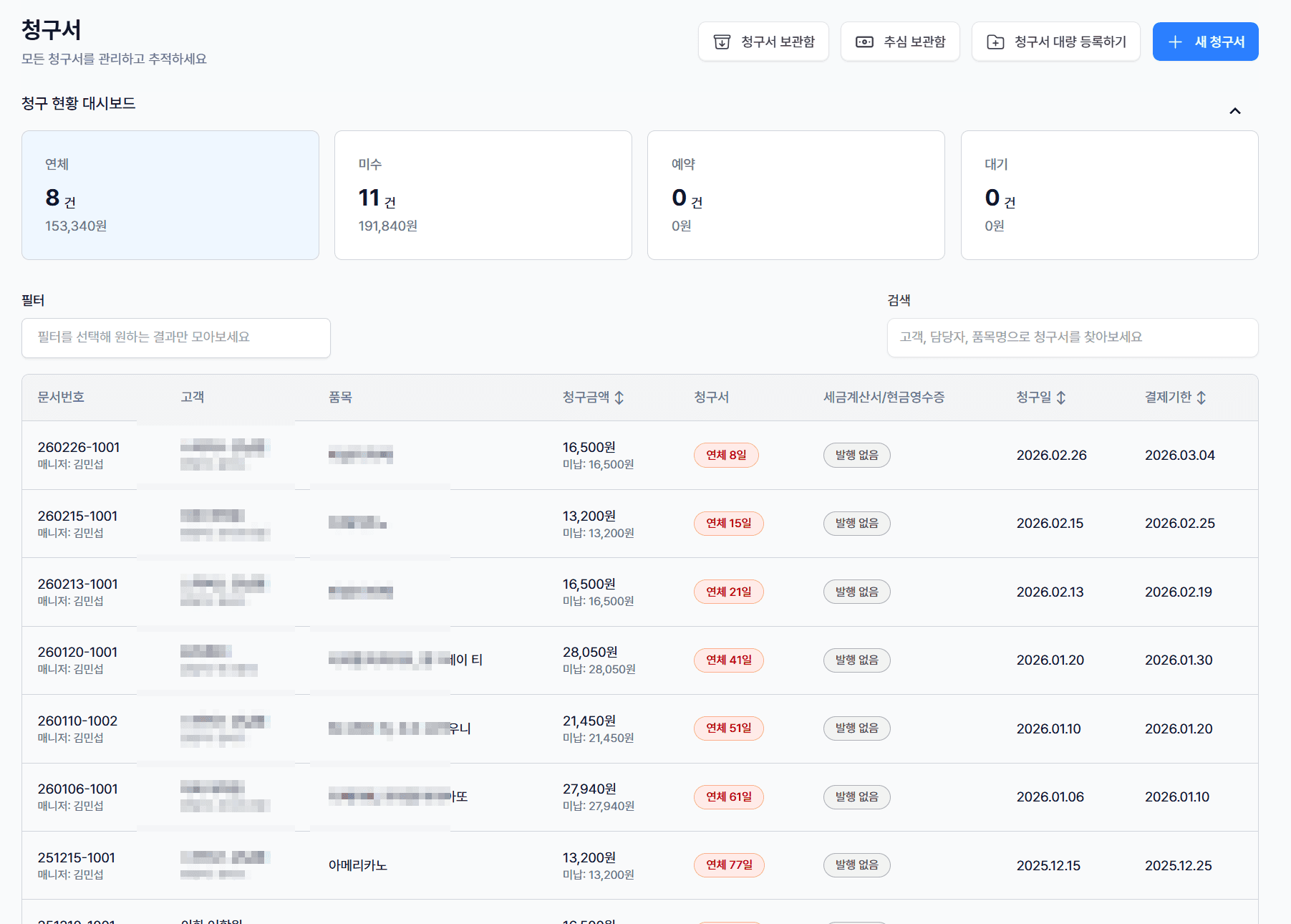 A. 회계 프로그램(더존, 세무사랑 등)에 기본 내장되어 있는 경우가 많고, 거래처가 많다면 자동화된 청구·수금 관리 솔루션을 활용하면 거래처원장을 수작업 없이 자동으로 관리할 수 있습니다. 📌
