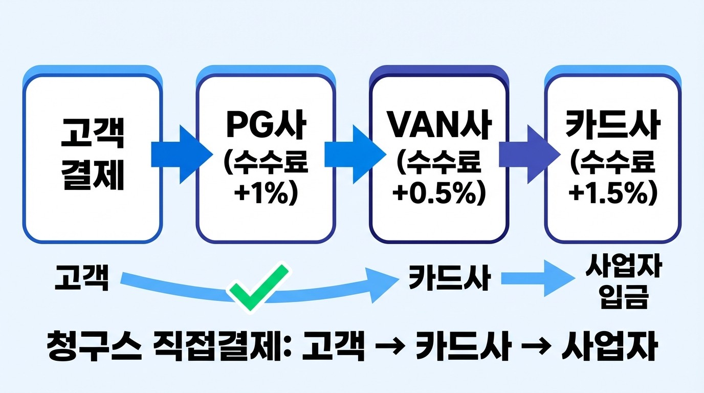 한 문장 결론: PG사를 거치지 않는 직접 결제 방식으로 전환하면, 같은 카드 결제에도 수수료를 1~1.5% 아낄 수 있습니다.